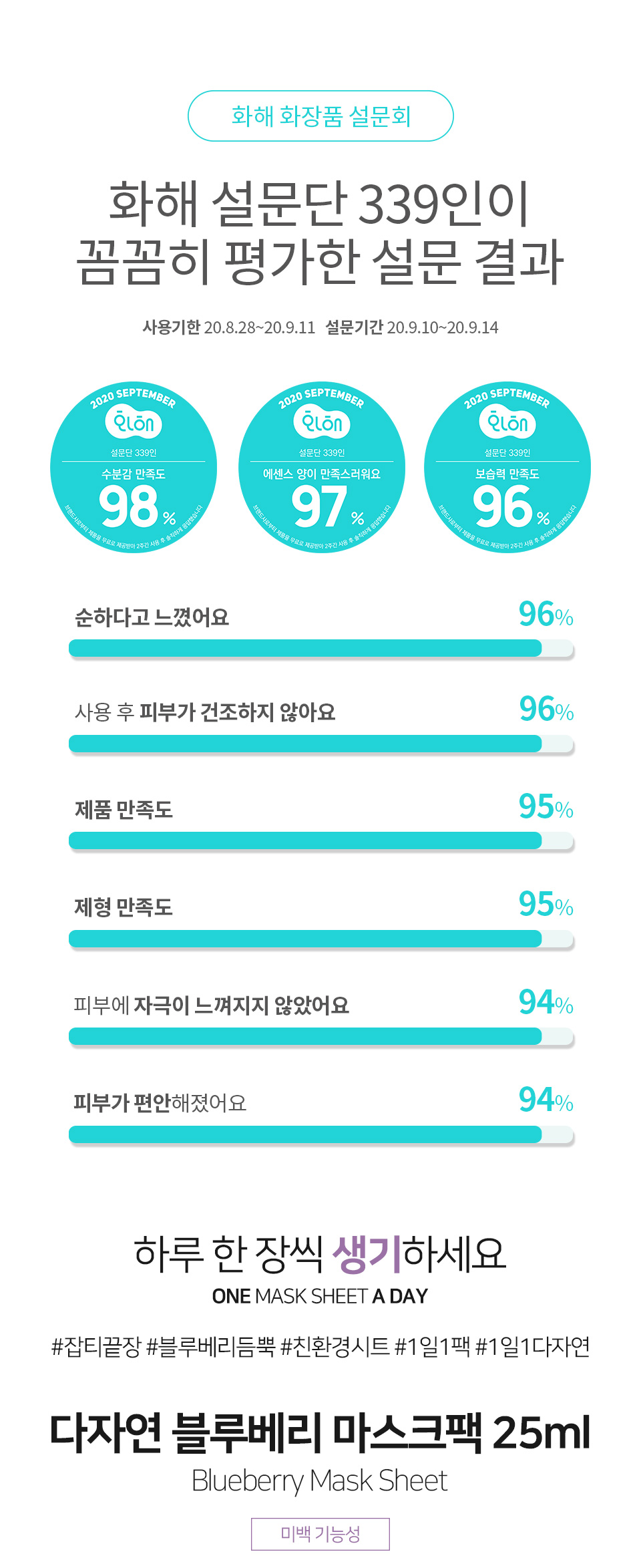 All Natural Mask Sheet Blueberry Mask 5pc