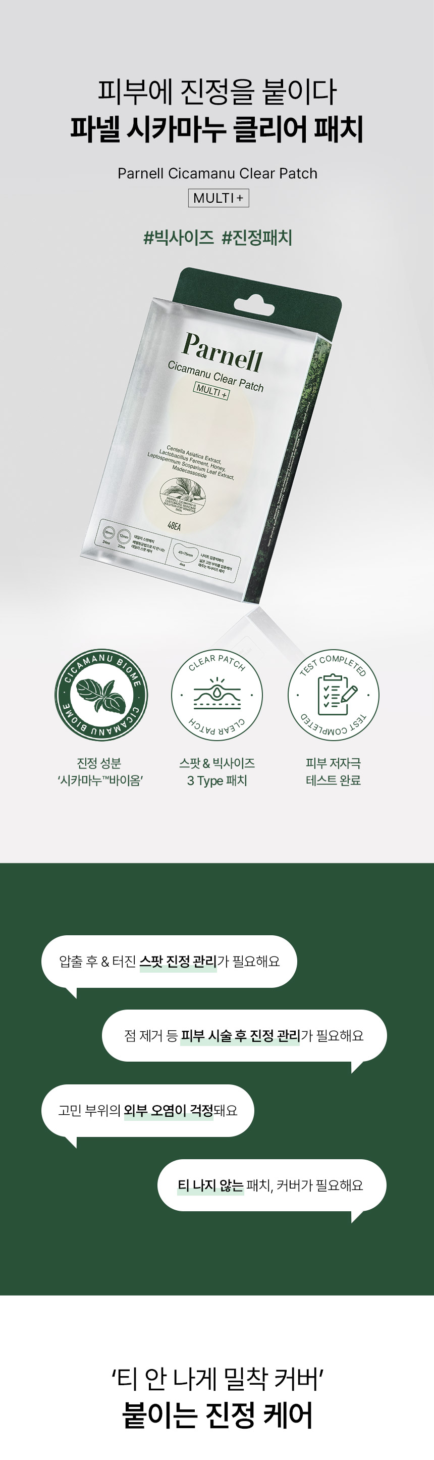 Parnell Cicamanu透明貼片中的Cicamanu™生態可舒緩問題區域,而羥基膠布可吸收瘢痕分泌物,維持濕潤環境。Cicamanu™生態包含馬尾草提取物、紐西蘭蜜和麥蘆卡葉提取物,有助於護理皮膚狀況,促進健康肌膚. 😌